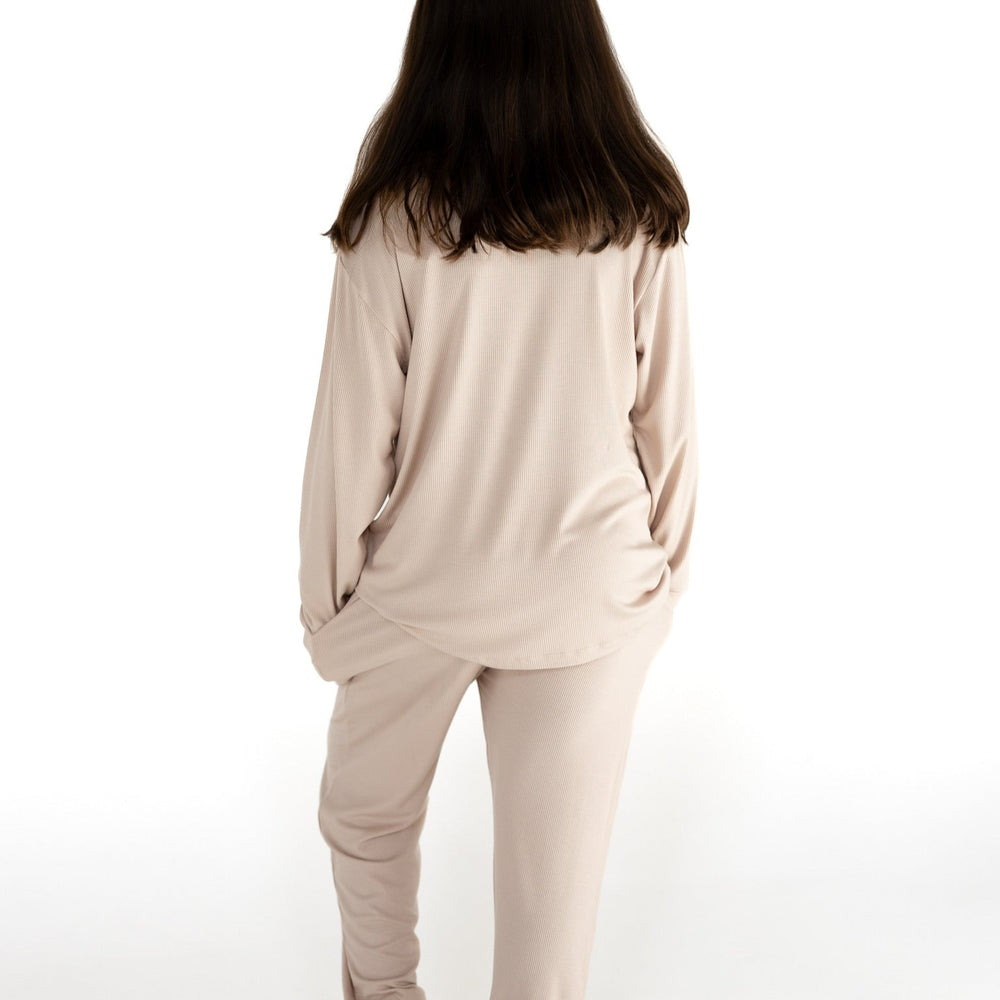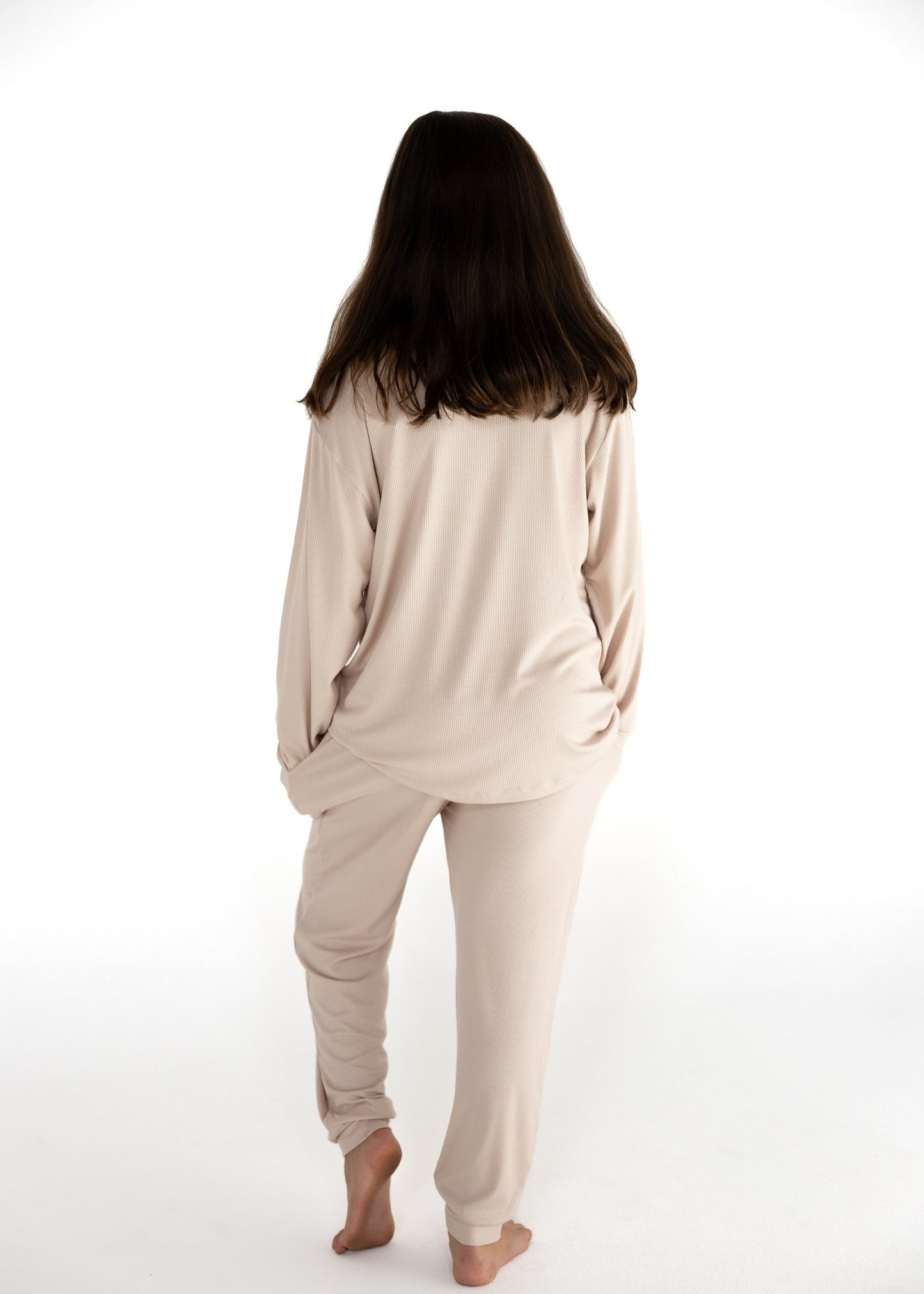 A long sleeve luxurious buttery-soft pyjama set made from durable ribbed modal fabric.